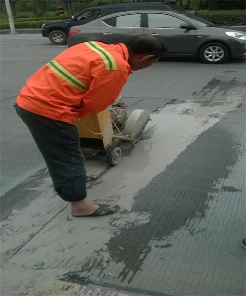 修补料在修补完成终凝1小时后,在原有伸缩缝位置重新切缝,切缝前先弹好墨线,保证切缝线平直和缝隙的美观。在一般情况下不得破坏原有路面切缝位置。根据灌缝需要,灌缝封闭后立即进行洒水并覆盖塑料薄膜进行养护(冬天除外)。